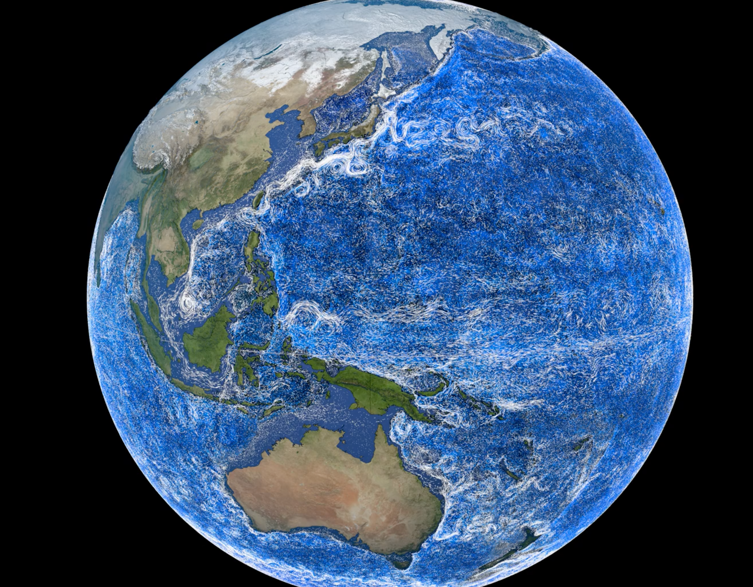 An Ocean in Motion: NASA’s Mesmerizing View of Earth’s Underwater Highways Earth (ESD) Earth Explore Explore Earth Science Climate Change Science in Action Multimedia Image Collections Videos Data For Researchers About Us This data visualization showing ocean currents around the world uses data from NASA’s ECCO model, or Estimating the Circulation and Climate of the Ocean. The model pulls data from spacecraft, buoys, and other measurements.
