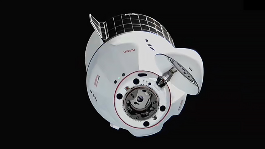 The SpaceX Dragon cargo craft, with its nosecone open, approaches the International Space Station for an automated docking to the Harmony module's space-facing port. Dragon delivered about 6,700 pounds of new science experiments and crew supplies replenishing the Expedition 73 crew.