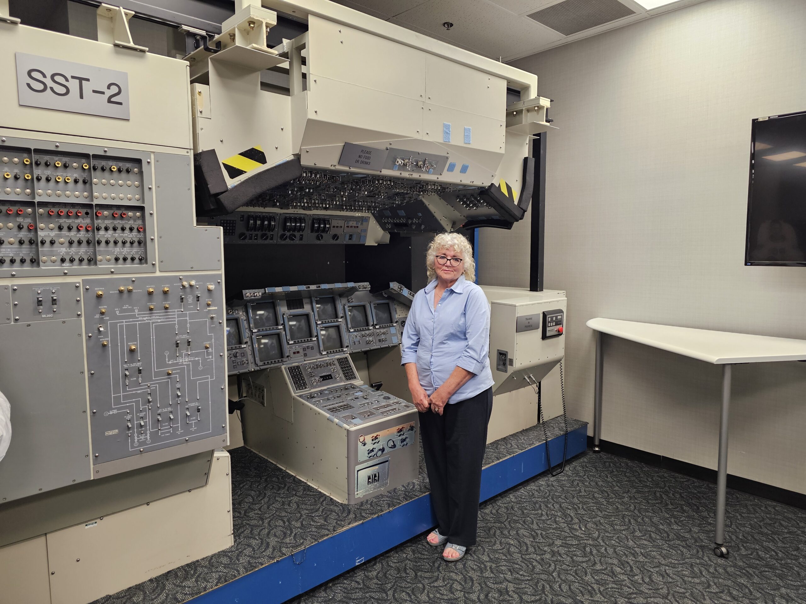 A woman wearing business casual clothing stands in front of an old space shuttle cockpit mockup.Mechele Elliott stands in front of a space shuttle cockpit mockup in the lobby of the Mission Control Center at NASA’s Johnson Space Center in Houston. Image courtesy of Mechele Elliott “While I was caring for my son during his cancer treatment—living in the hospital with him and supporting his recovery at home—a family friend who worked at NASA took notice,” Elliott said. “She quietly observed my strength, organization, and unwavering dedication to my son. One day she called and said, ‘Get your resume together.’”