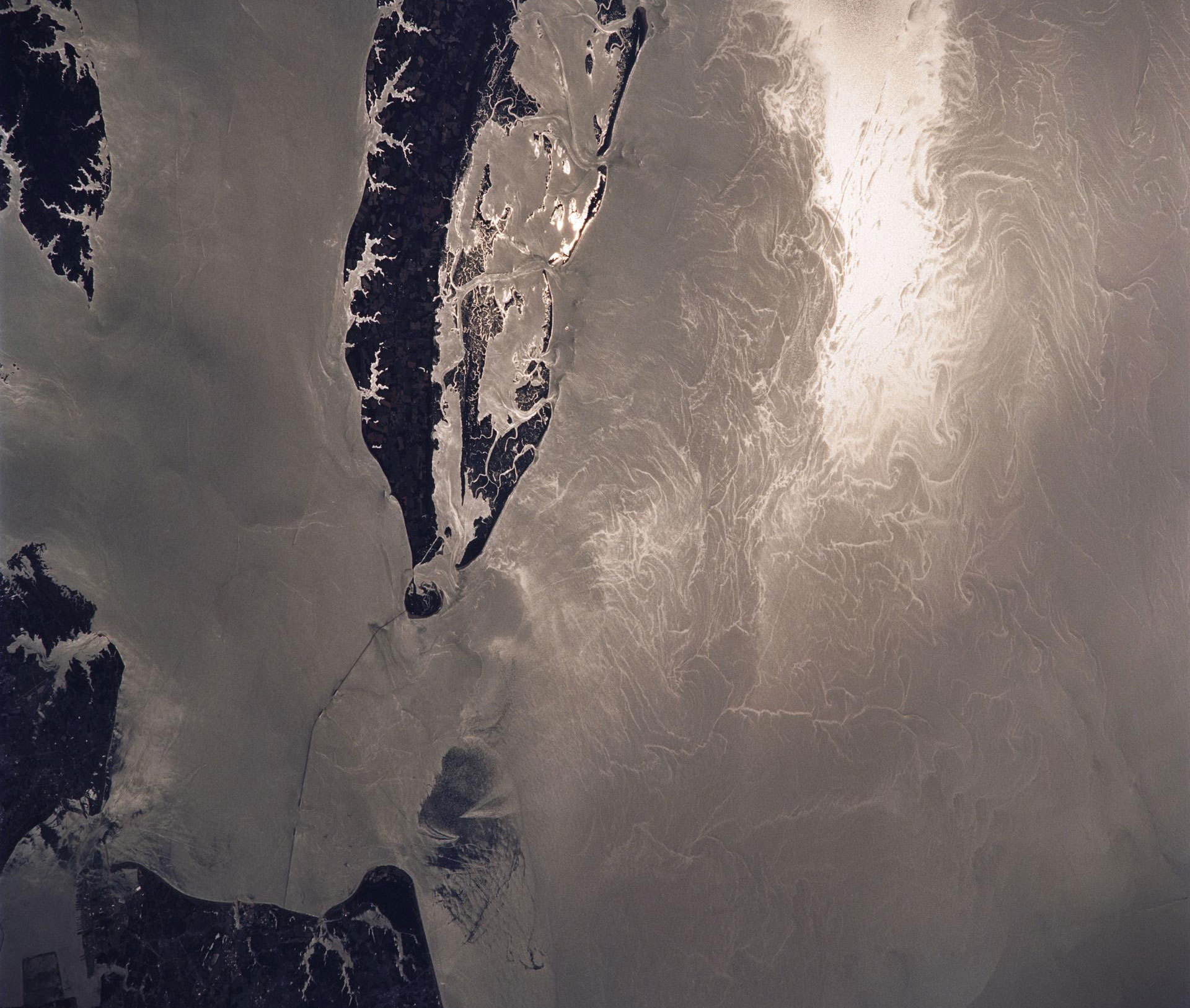 Sunlight reflects off the ocean surface near Norfolk, Virginia, in this 1991 space shuttle image, highlighting swirling patterns created by features such as internal waves, which are produced when the tide moves over underwater features. Data from the international SWOT mission is revealing the role of smaller-scale waves and eddies.NASA The international mission collects two-dimensional views of smaller waves and currents that are bringing into focus the ocean’s role in supporting life on Earth.
