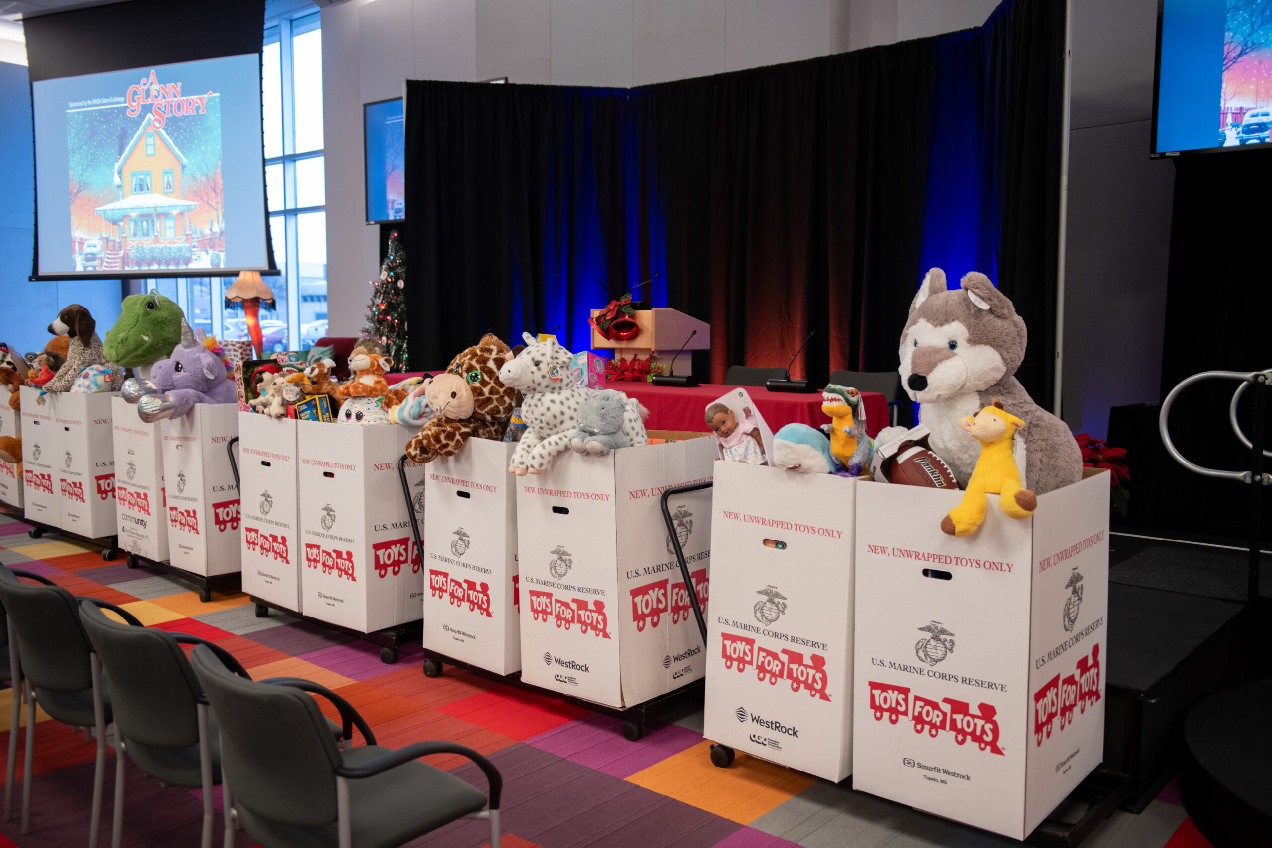 NASA Glenn employees donated 11 boxes of new, unwrapped gifts to the Toys for Tots program. Credit: NASA/Sara Lowthian-Hanna NASA’s Glenn Research Center continued a decades-long tradition of participating in the Marine Corps Reserve Toys for Tots program during the 2024 holiday season. On Dec. 9, members of the Marine Corps Reserve (3rd Battalion, 25th Marines) picked up 11 boxes of toys donated by employees from NASA Glenn’s facilities in Cleveland and Sandusky, Ohio.