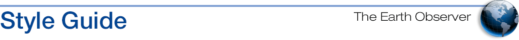 Please be aware that this style guide is a living document and as such continues to evolve. If it has been a while since you have submitted an article for The Earth Observer, please be sure you are using the latest version of the Style Guide. The date of the most recent update is printed in the footer of the document to make it easier to maintain the most current version of the document.